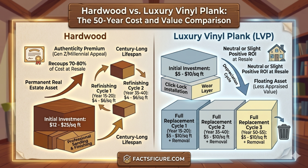 However, for the “Legacy Homeowner”—someone who plans to hold the asset for a decade or more—the “Quality Over Quantity Equation” clearly favors Hardwood. The ability to refinish, the lack of a “replacement cliff,” and the significant “Authenticity Premium” at the time of resale make Hardwood the superior financial instrument. At factsfigure.com, our audit of the data suggests that while LVP is an excellent functional solution, Hardwood remains the only flooring material that truly “pays rent” back to the homeowner through equity growth and timeless appeal. In the final calculation, the “expensive” floor is the one that builds wealth, while the “cheap” floor is the one that eventually requires a dumpster.