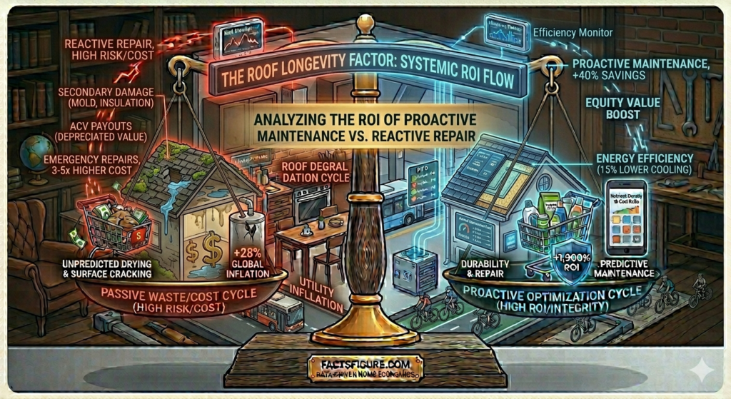 When we calculate the ROI, the numbers are undeniable. If a full roof replacement costs $15,000 and lasts 15 years, your “Annualized Depreciation Cost” is $1,000. However, if you spend $300 a year on professional inspections and minor maintenance to extend that life to 30 years, your new annualized cost (including maintenance) drops to approximately $800. Over three decades, this data-driven strategy saves the homeowner $6,000 in depreciation alone, not including the avoidance of emergency repair costs. This is a clear example of how a small, consistent “Figure” prevents a massive, unplanned capital expenditure.